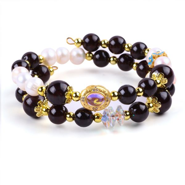 Custom DIY 8MM Garnet And White Pearl With Flower Spacer Bead Double Bangle For Daily Wear Images |